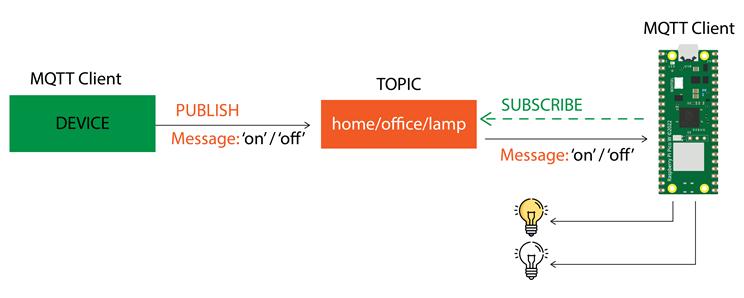 El cerebro de todo el proyecto es una placa Pico W que se conecta a Internet a un broker MQTT gratuito que cree en el sitio HiveMQ.