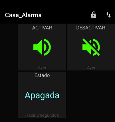 Si la alarma se activa en el teléfono suena una alarma para indicar que hay un intruso. Si quiero activar la alarma oprimo el botón correspondiente y el programa envía un comando al broker que a su vez lo envía a la placa electrónica que actúa sobre el relevador correspondiente y le "hace creer" al control remoto que un dedo humano activo el botón lo mismo para desactivar.